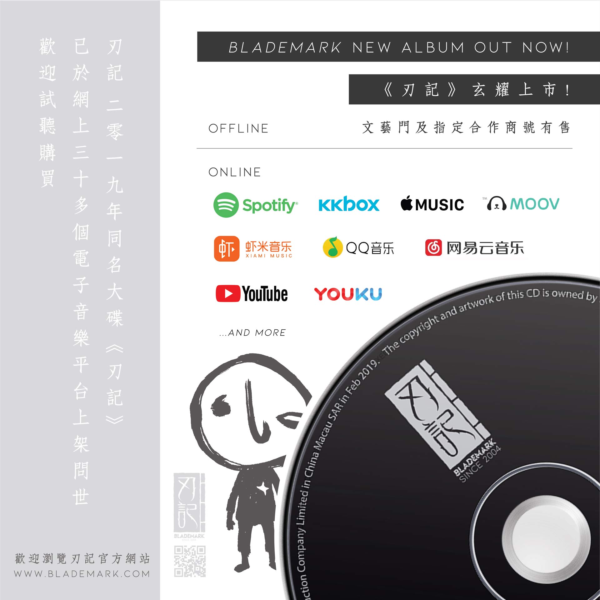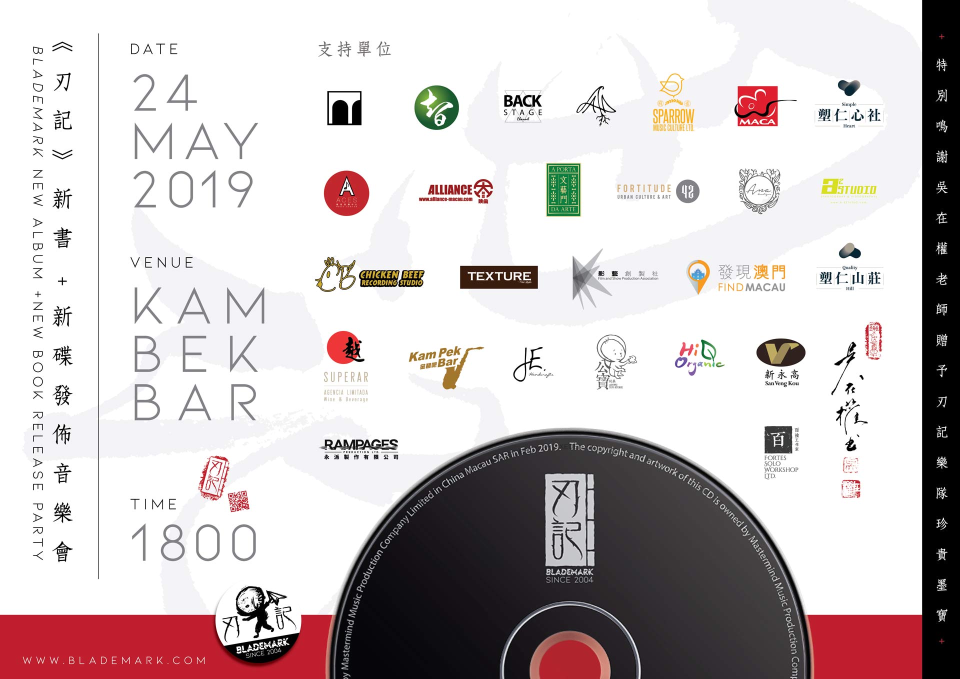 刃記樂隊,將攜全新同名大碟專輯《刃記》於2019年5月24日下午六時,在澳門金碧吧舉行新碟、新書發佈會。